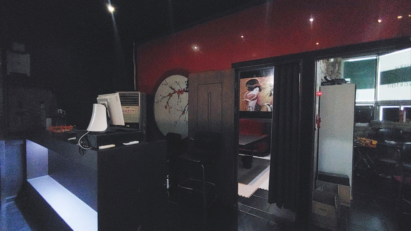 米 메인 VIP 대형룸 1개, 일반룸 4개, 사무실 1개, 아일랜드 롱빠와 주방, 화장실은 복도에 남,여 각각 1개씩 구성되어 있습니다.